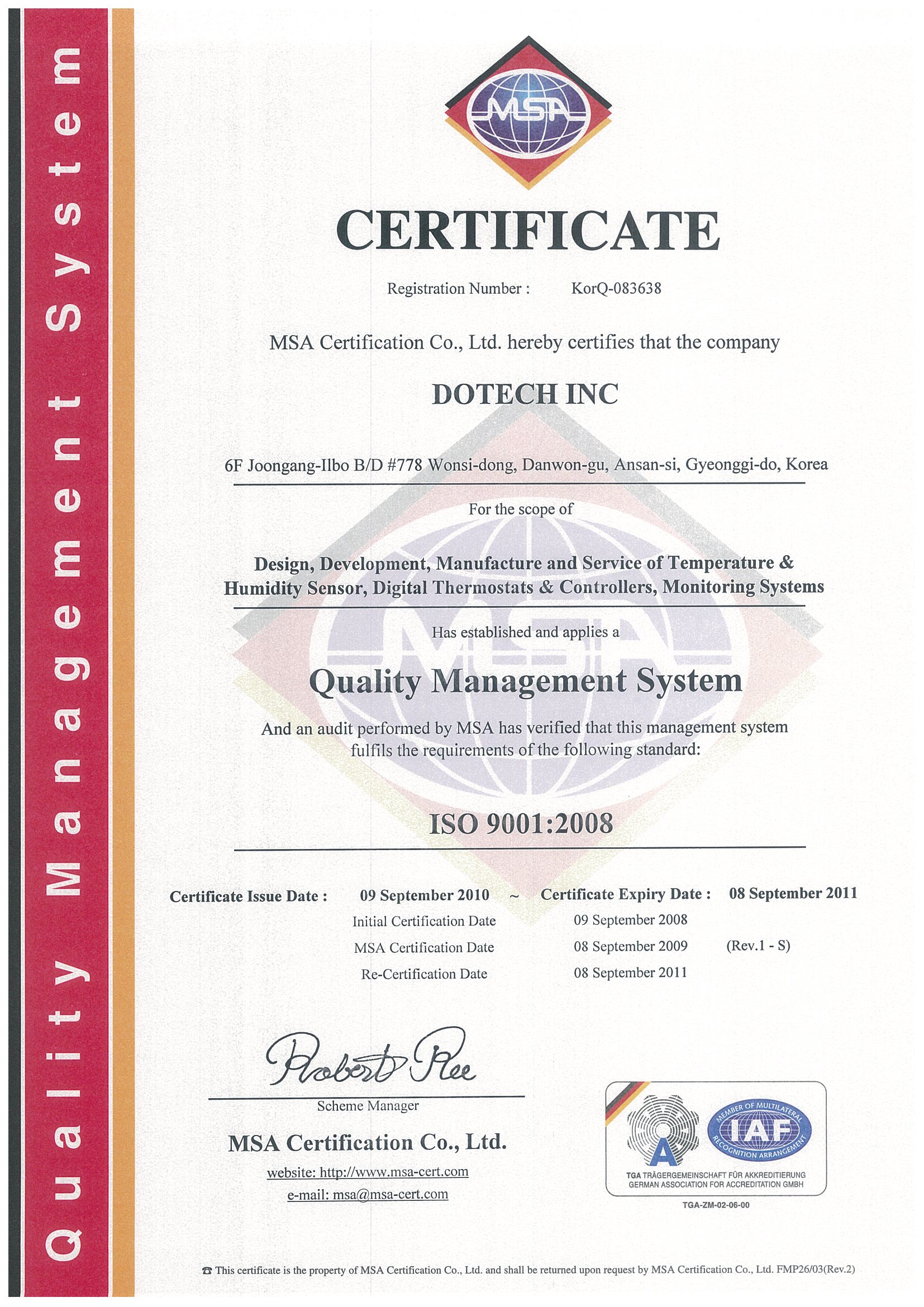 certyfikat DOTECH